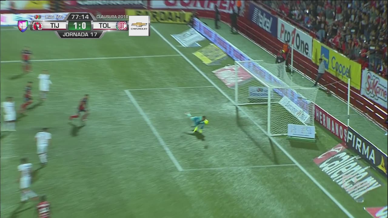 Damián Musto recibe de Miller Bolaños y saca un derechazo desde fuera del área que exigió a Luis García, quien respondió bien.