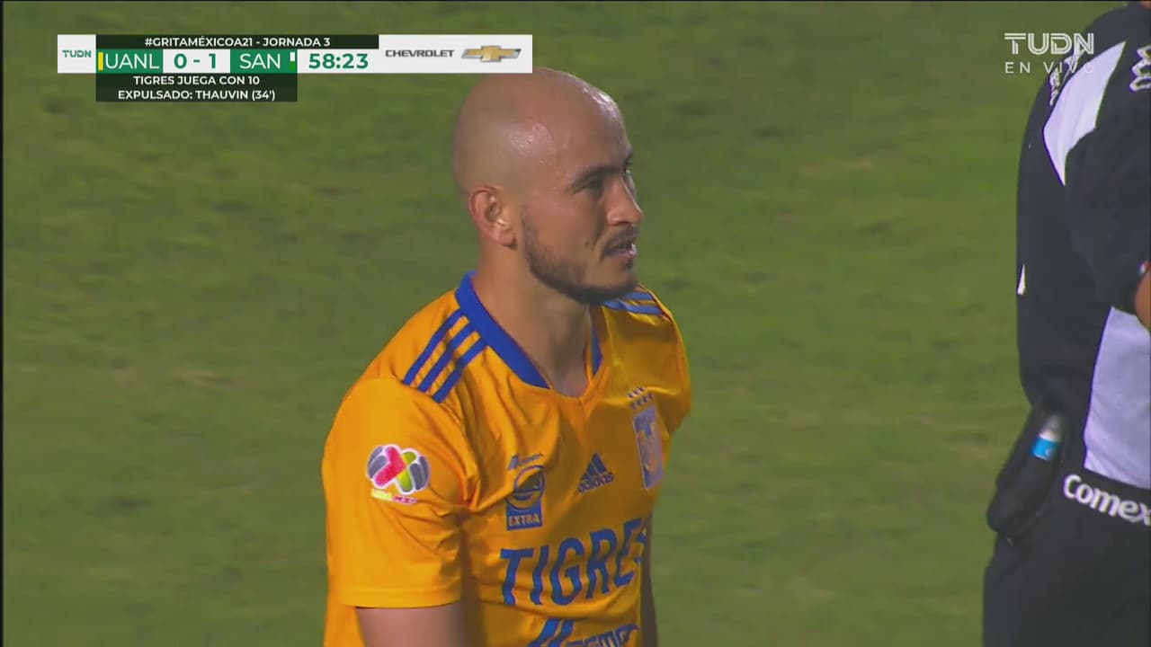 El delantero de Tigres se la jugó solo en el área y por poco pone el empate con una volea al minuto 58.