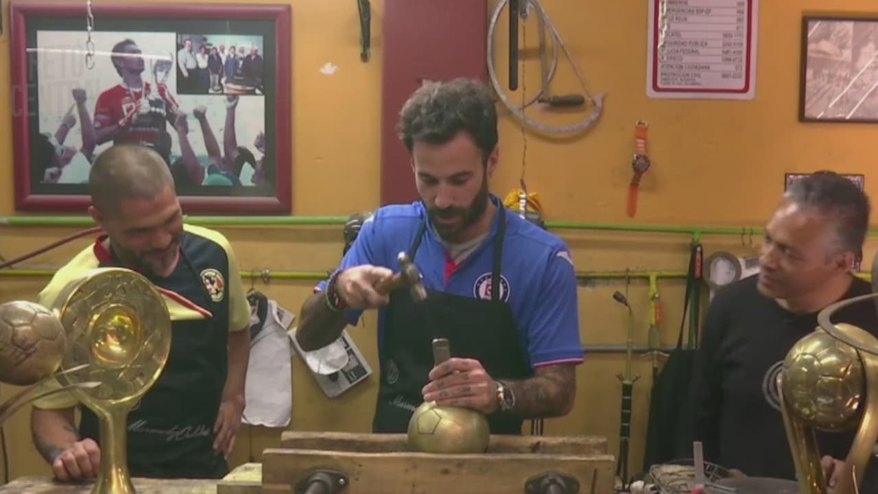 Los exfutbolistas visitaron el lugar donde se hacen los trofeos de la Liga MX y Copa MX, entre otros, y se retaron a diferentes pruebas, entre ellas la de cincelar un pentágono. ¿Quién habrá ganado?