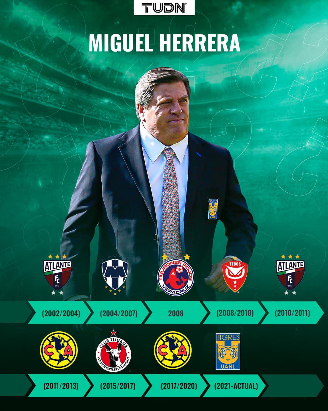 Después de haber enfrentado retos con Atlante, Monterrey, Veracruz, Estudiantes Tecos, y una segunda etapa con Atlante, Miguel Herrera llegó a las Águilas del América en noviembre del 2011 y ahí cambió todo.
