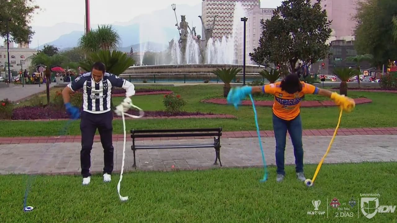 En el primer desafío, el exfutbolista de la 'Pandilla' se llevó el triunfo. Pero en este segundo round, el 'tigre' fue más rápido que el delantero de Rayados amarrando con sus manos el azul y oro. Aquí el momento.