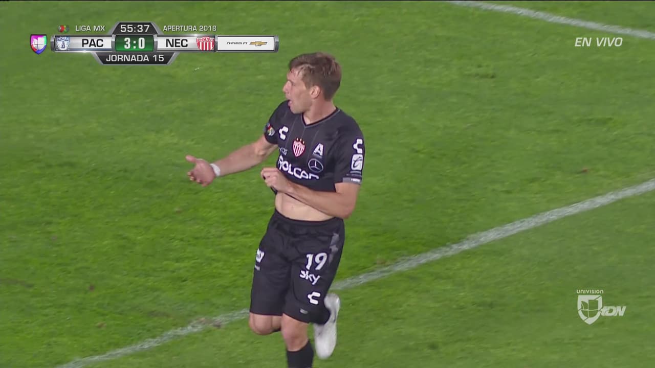 El atacante hizo una gran recepción dirigida y picó la pelota ante la salida del arquero Blanco.