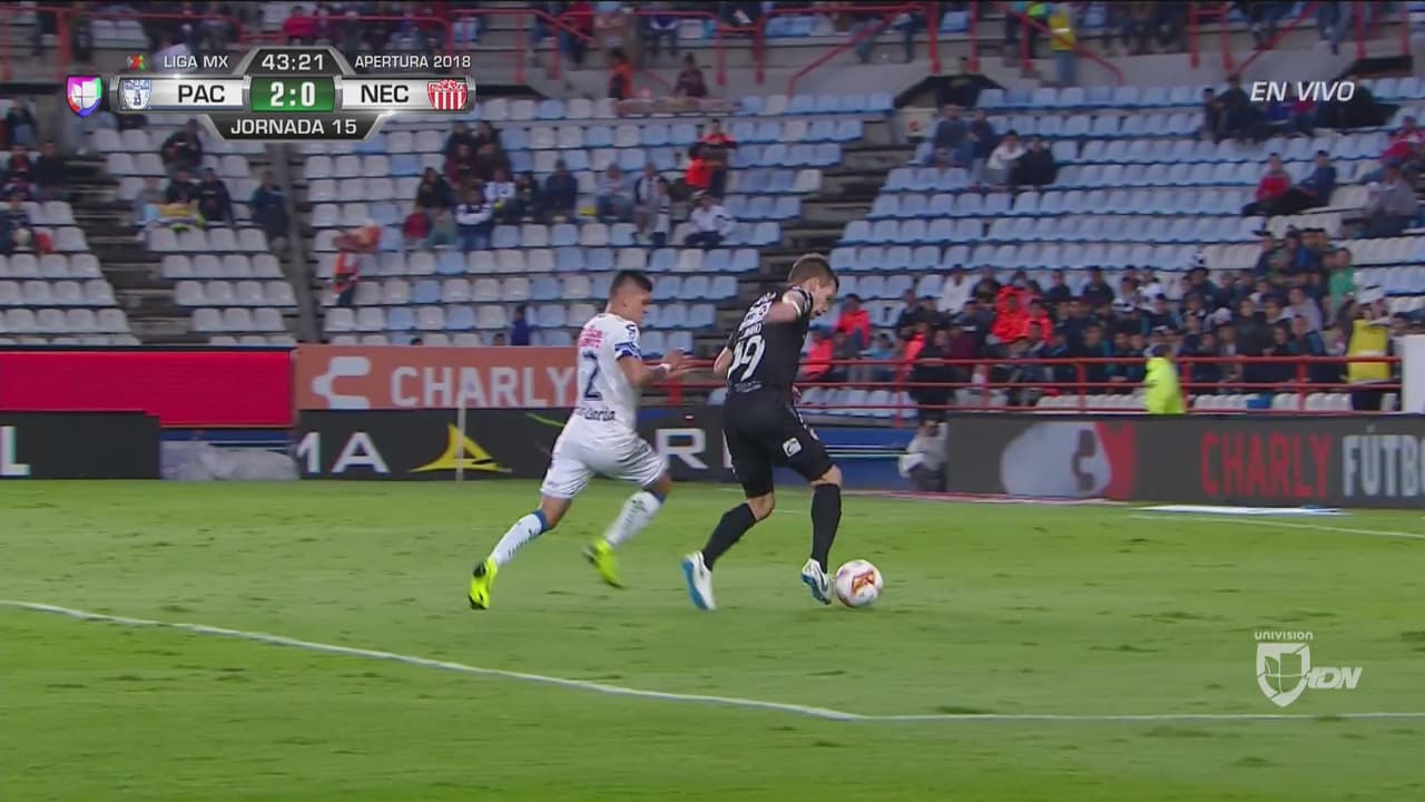 El delantero 'necaxista' ya se había quitado a García pero no pudo definir bien