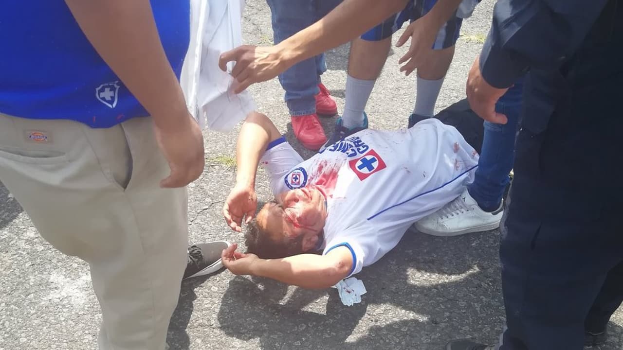 Un aficionado con playera de los cementeros resultó herido y algunas imágenes lo mostraron tendido en el suelo con manchas de sangre en la ropa mientras otros seguidores del cuadro local lo auxiliaban.