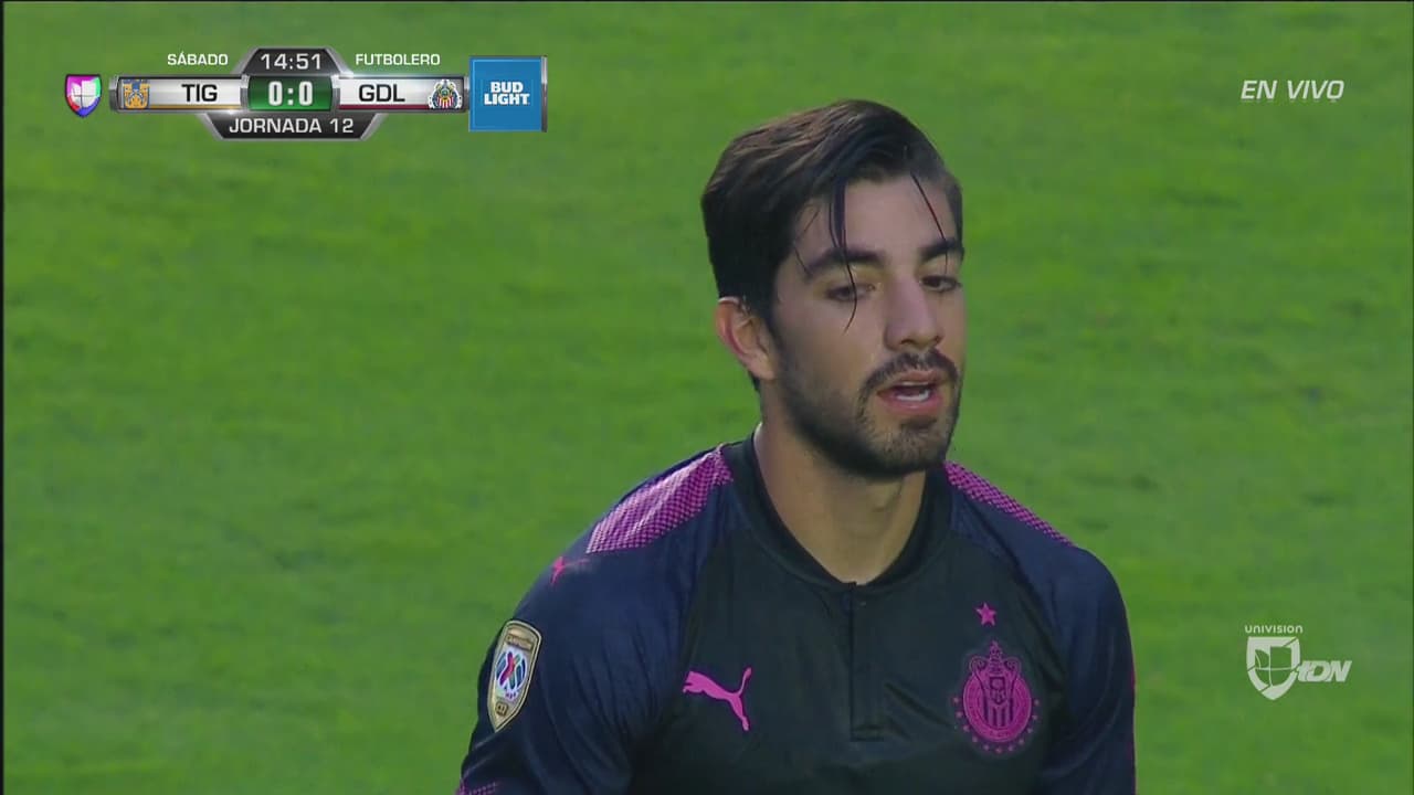El rojiblanco se quitó rivales de encima hasta meterse al área y sacar un disparo con etiqueta de gol, pero el guardameta de Tigres se lanzó para desviar la pelota a tiro de esquina.