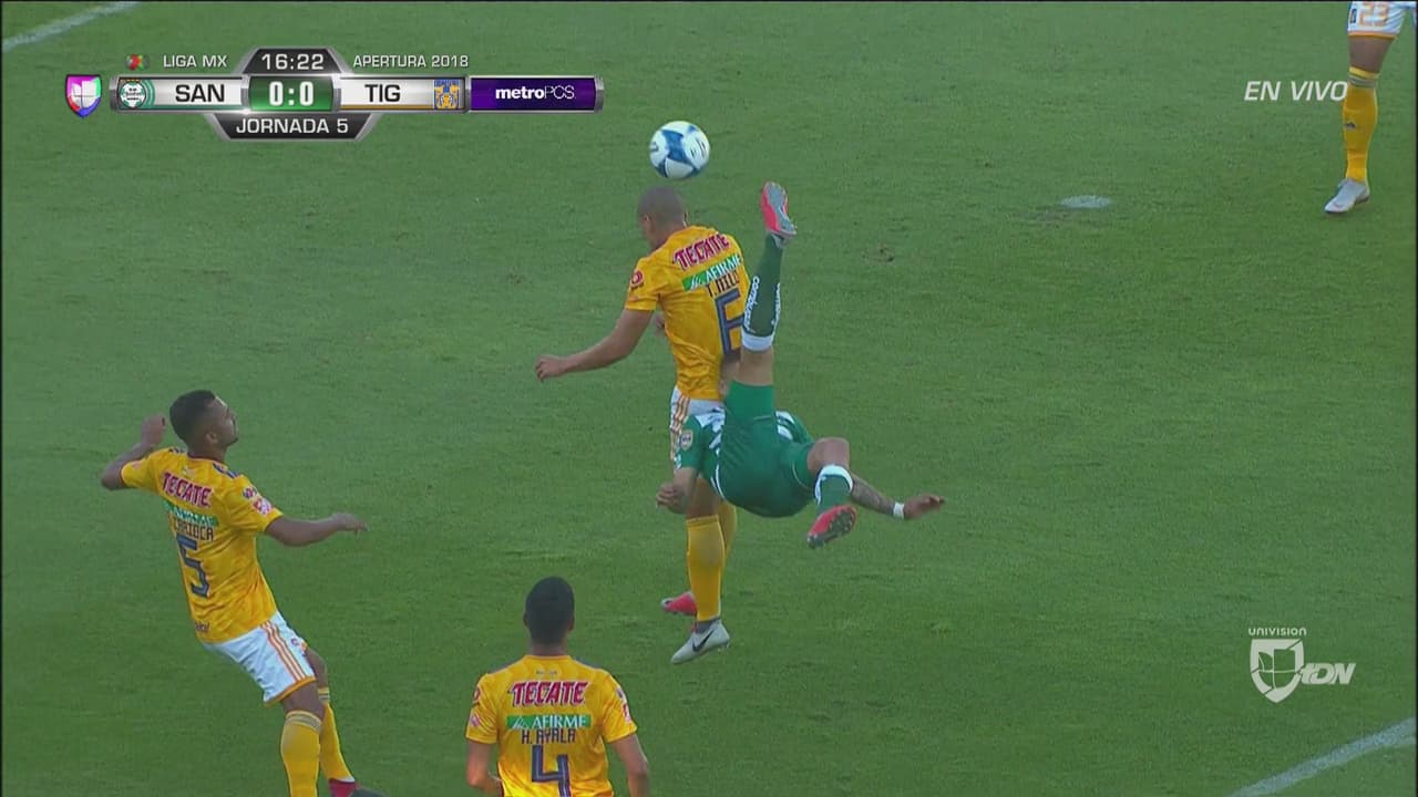 'El Cabecita' controló de espaldas al marco y recurrió a un espectacular recurso aunque Guzmán estaba bien colocado. Se agradece el gesto.