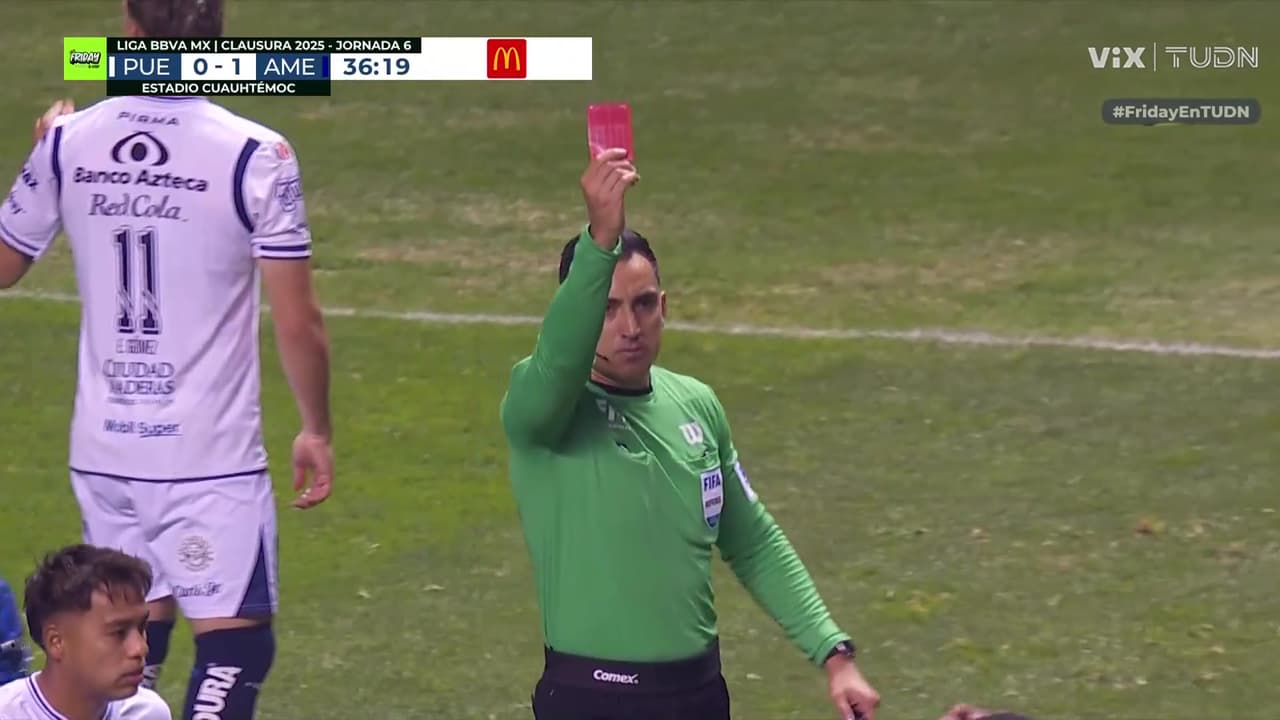 ¡Roja para Ángulo! El defensor del Puebla corta una jugada clara por mano