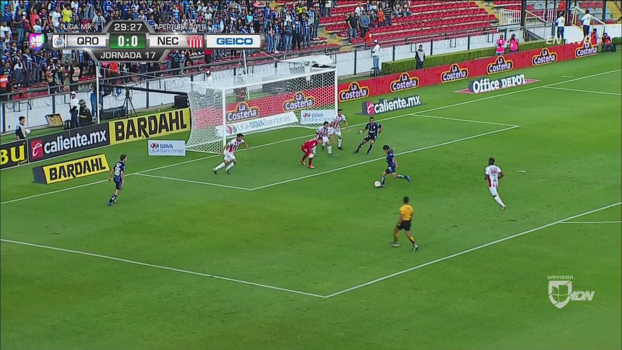 Ruiz dejó solo a Cortizo que disparó, la pelota superó al portero pero apareció Rubén Fernández para cortar la trayectoria con el pie.