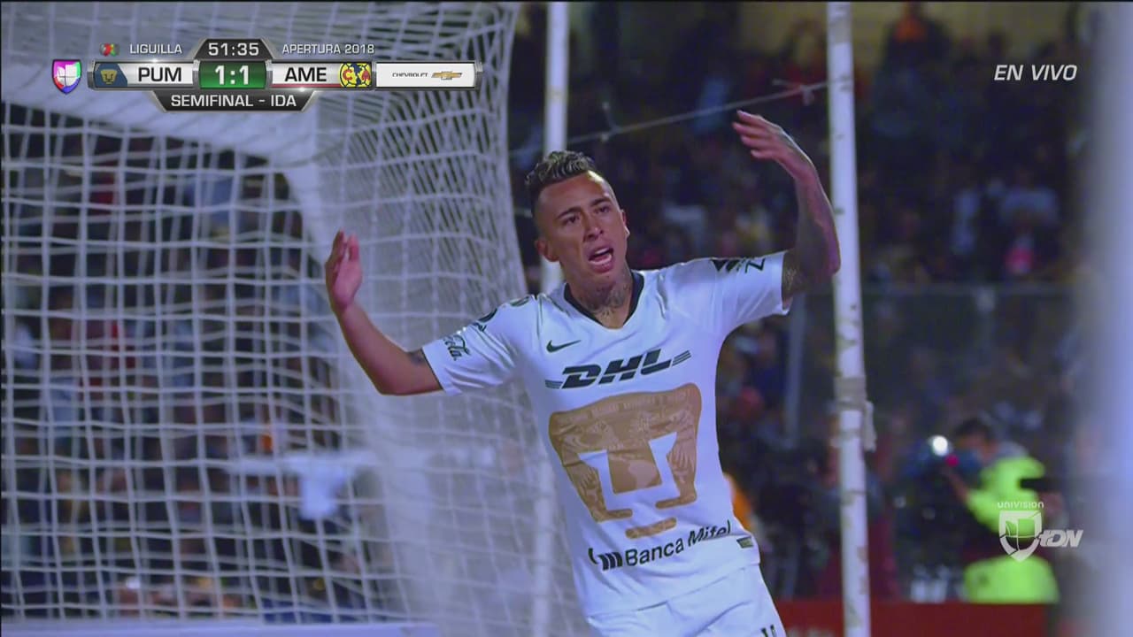 El lateral de los Pumas desbordó de gran forma, metió diagonal retrasada y Martín Rodríguez fusiló a Marchesín.