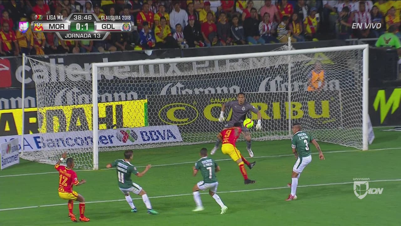 El delantero peruano remató de cabeza en el corazón del área, un centro por el costado derecho, pero el balón salió directo a la humanidad del portero Rodolfo Cota.