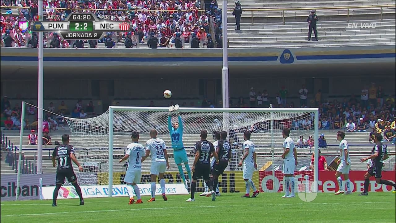 Otro travesaño del Necaxa, ahora fue Matías Fernandez que volvió a meter un gran disparo.