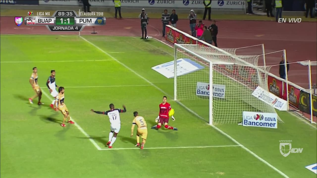 El delantero de la BUAP bajó el balón en el área chica y remató a quemarropa.