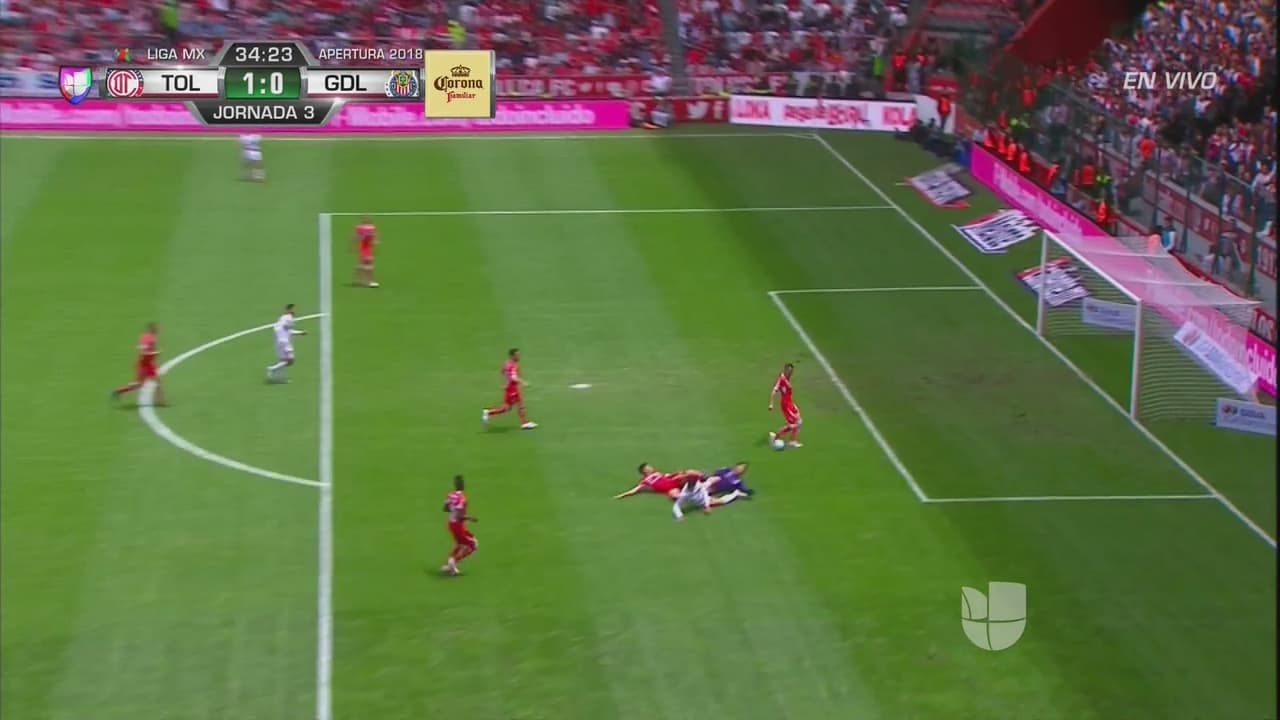 El defensor de Toluca salvó su portería con una barrida oportuna a un disparo de Alan ante la salida de Talavera.