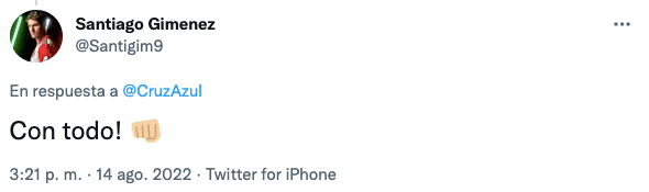 Al terminar el video se puede escuchar la porra a gritos de los jugadores de Cruz Azul antes de salir al campo, por lo que la respuesta de Santiago Giménez, 'Con todo!' y el puño de fuerza tiene el peso exacto por el que los seguidores de La Máquina respondieron de inmediato dando ‘like’.