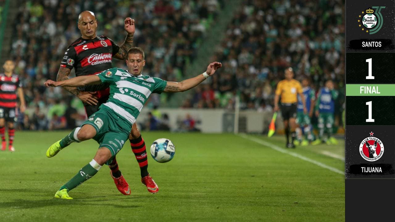 Xolos tomó ventaja en el marcador con un tanto de Miler Bolaños. Por los de Torreón igualó Javier Correa en el segundo tiempo.