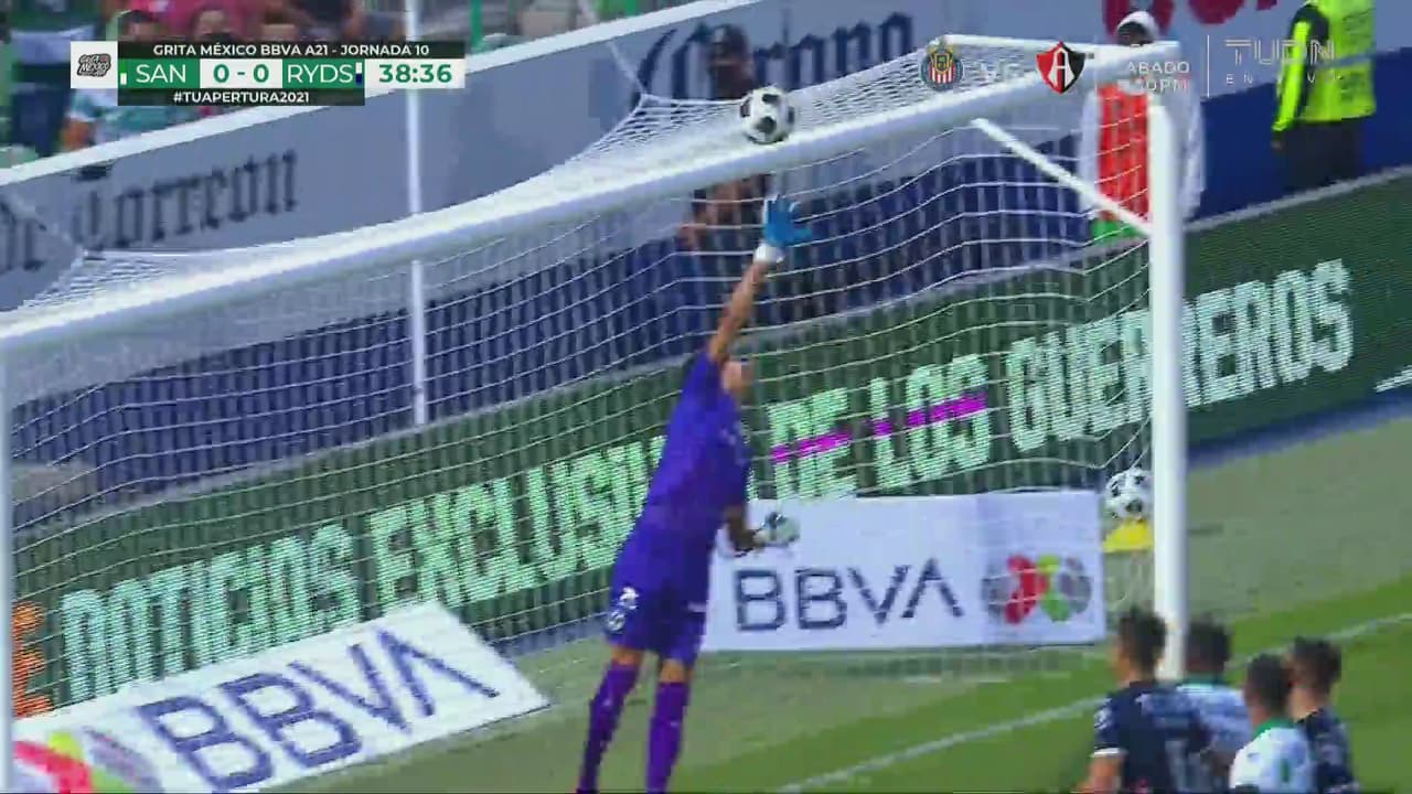 Sin embargo unos minutos después una falta de Moreno sobre el 'Mudo' Aguirre se marca como penal y le da la oportunidad a Santos de emparejar el marcador.