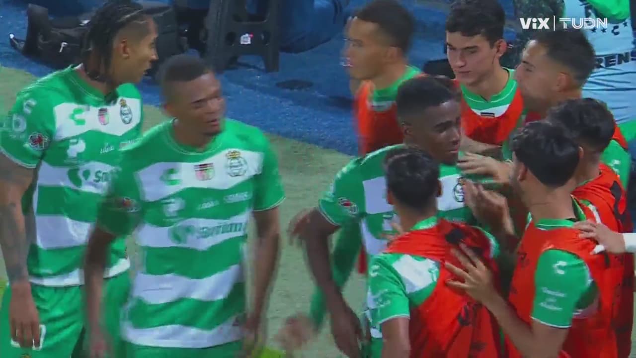 Un error en la salida de Santos permitió que Lucas Rodríguez, al minuto 25, lograra el empate al definir dentro del área tras el rechace del arquero de Santos.
