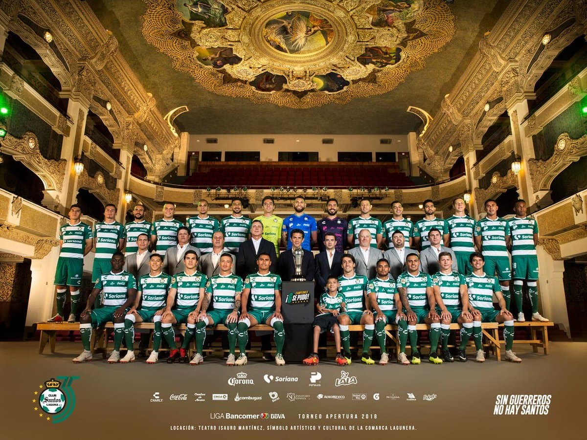 El vigente campeón del balompié mexicano aprovechó la toma de su fotografía del Apertura 2018 para promover el Teatro Isauro Martínez de Torreón.