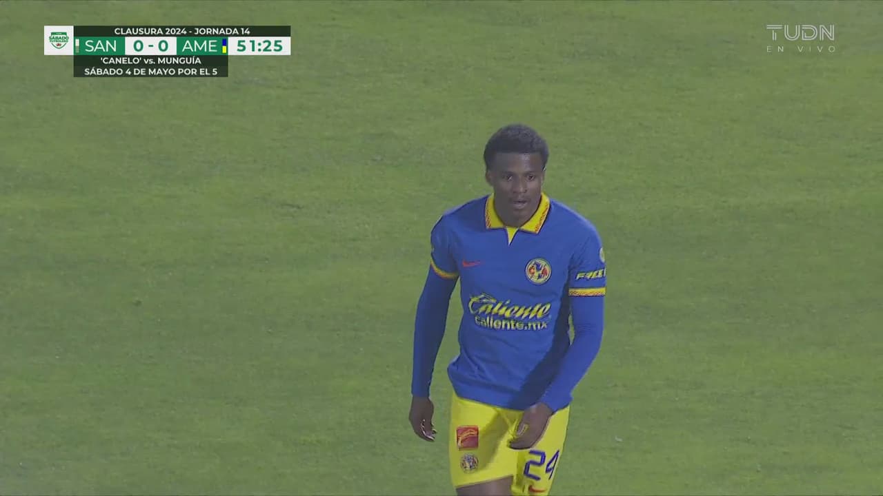 Otro error en la defensa de Santos casi les cuesta el empate. América está cerca del gol.