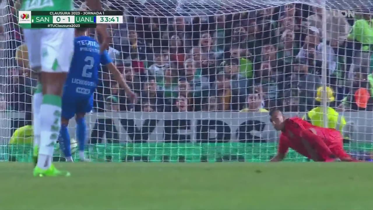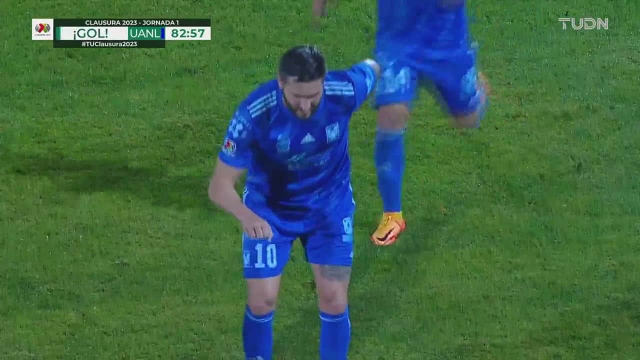 Era cuestión de tiempo para que Tigres vulnerara la defensa santista, que no pudo aguantar más tras un desborde de Quinoñes y un pase al corazón del área, donde el francés remató a primer poste.