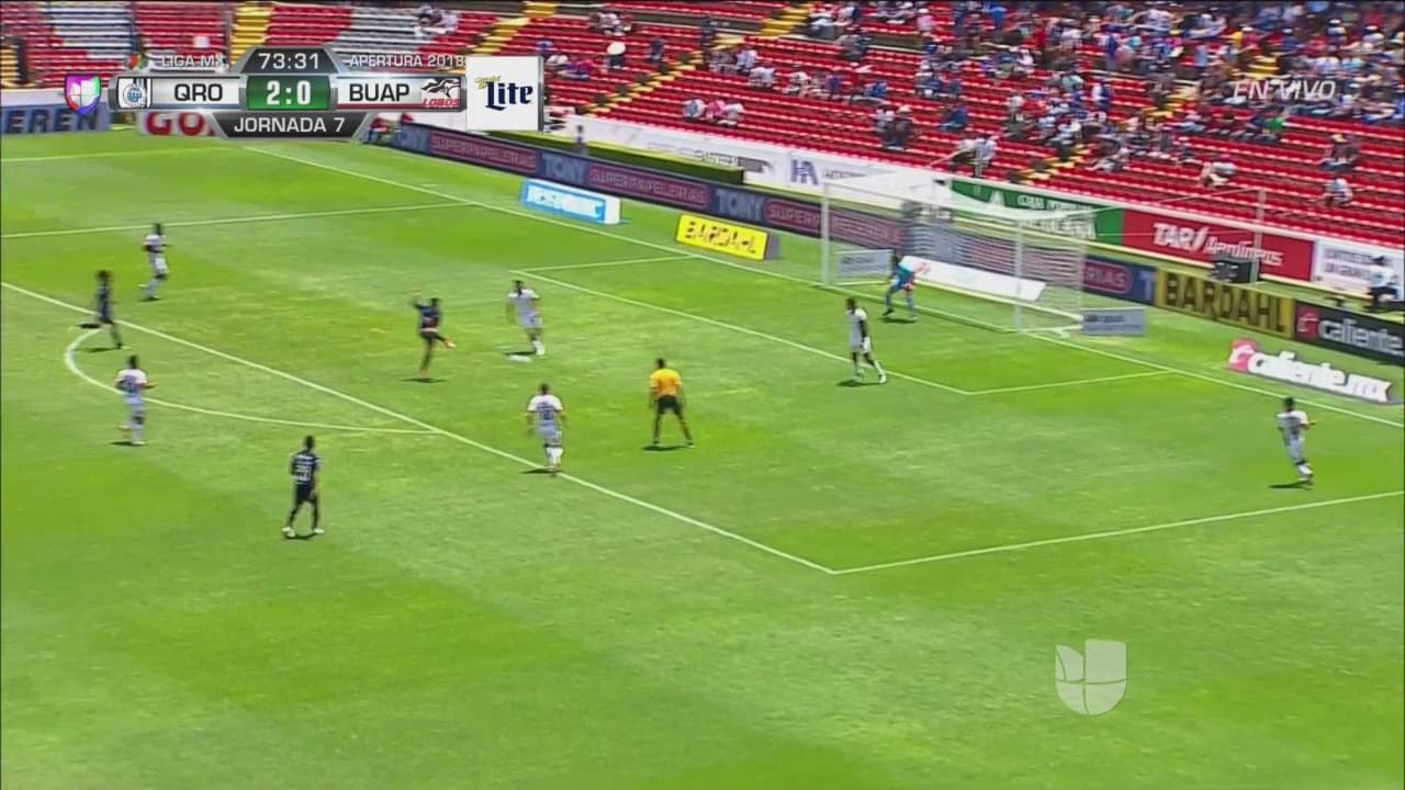 Gallos quiere finiquitar el encuentro, pero Toño Rodríguez evita una nueva caída de su meta.