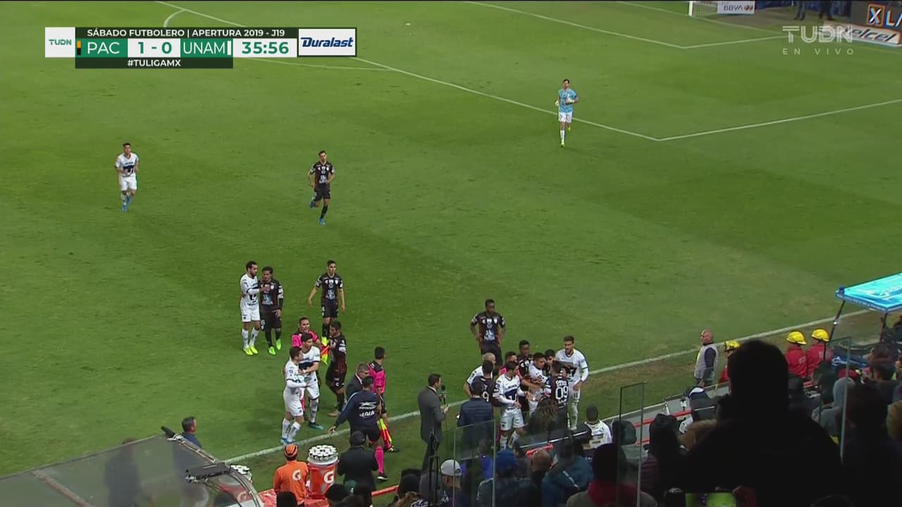 Tras una barrida entre Alan y Hernández, el jugador de Pumas le dijo algo y eso hizo que Rubens también se involucrara.