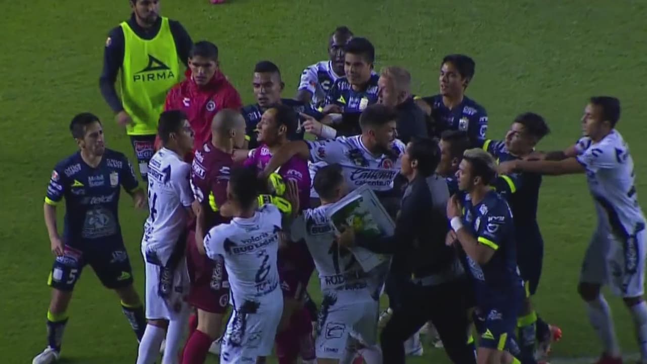 Cuando el árbitro pitó el final del partido, se armó la campal en la cancha del Caliente.