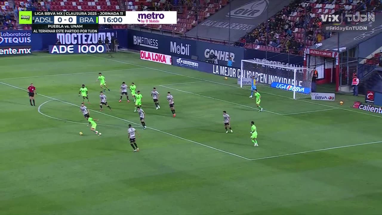 En la jugada de mayor peligro en el partido, Bravos lo intenta en varias ocasiones, pero al final el invitado no llega en San Luis.
