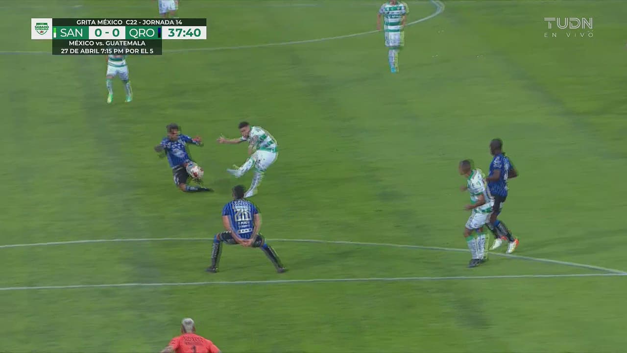 Al medio de Santos le quedó un bombón, tras el error y su remate se fue por un lado al 37’.