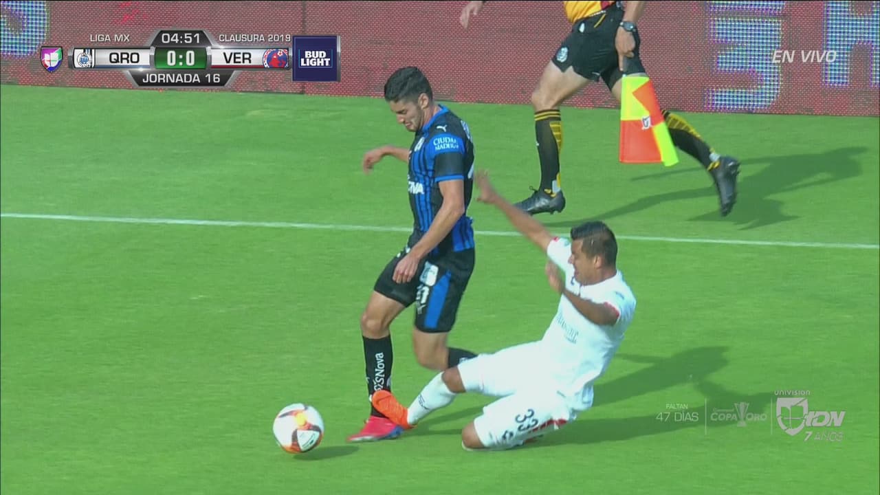 El lateral 'planchó' el tobillo del volante queretano y se va expulsado.