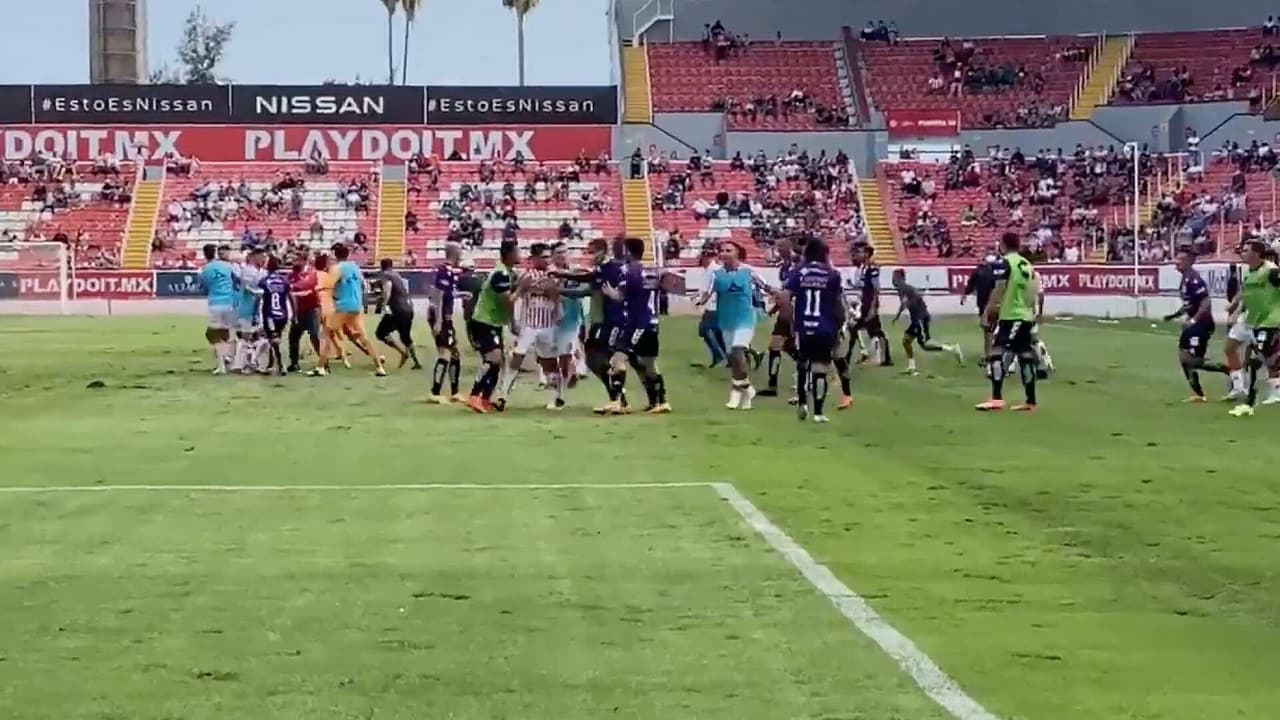 Antes del final del primer tiempo se armó la gresca en la que dos jugadores fueron expulsados.
