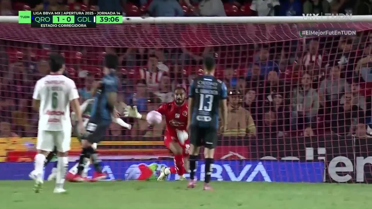 El portero de Querétaro se empleó a fondo para evitar el empate ante un desvío, por lo que sacó bien cabezazo.