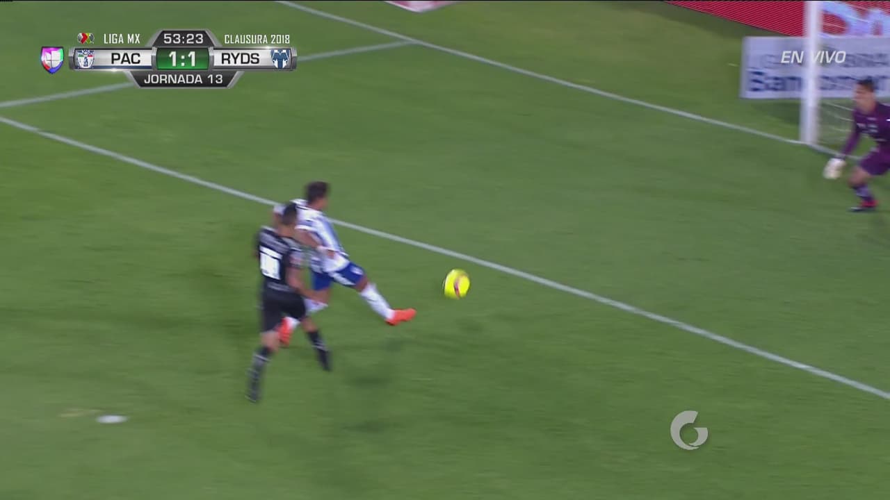 El delantero de los Tuzos se anticipó a la marca de la zaga Rayada para empujar el servicio al centro del área.
