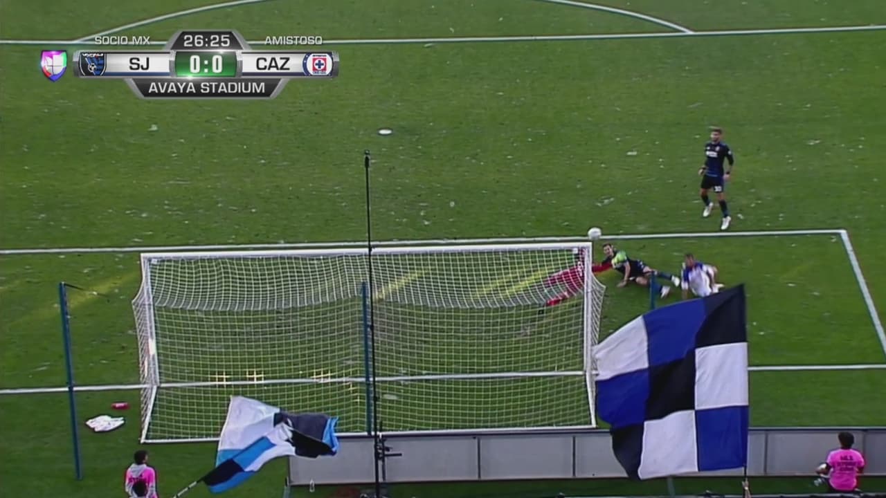 Parecía difícil de rematar pero el delantero de 'La Máquina' logró conectar el balón aunque le faltaron centímetros para abrir el marcador.
