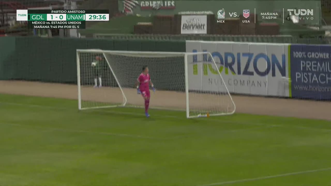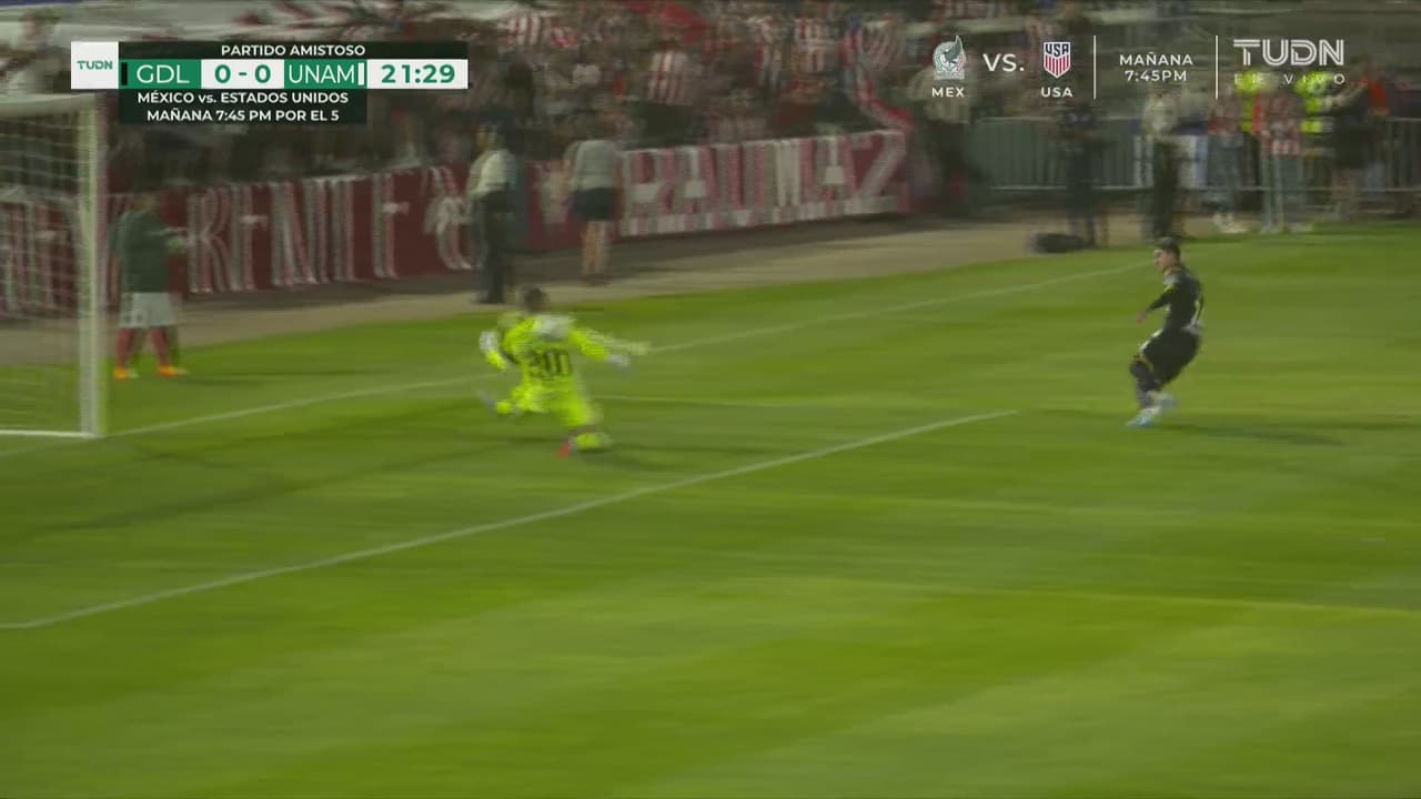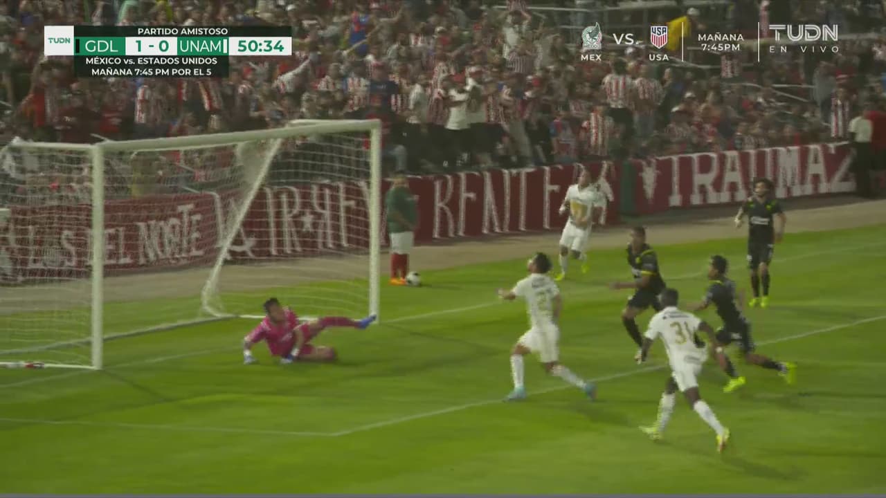 ¡Paradón! Julio González atajó un cabezazo a bocajarro que era el segundo para las Chivas.