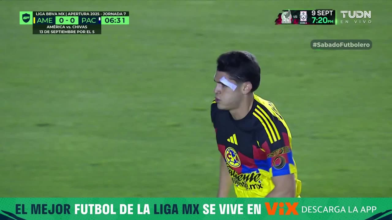 El futbolista del América se presenta ante Pachuca con una curación en la ceja, por golpe durante los entrenamientos.
