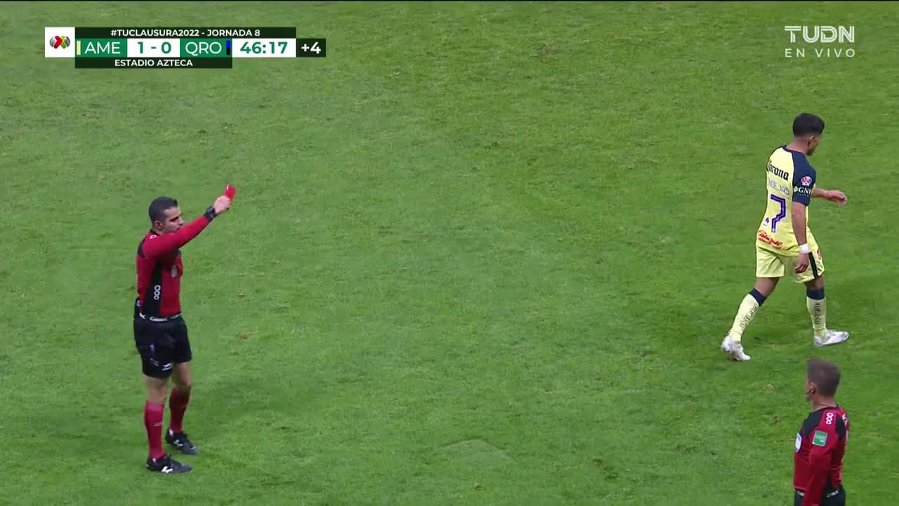 ¡Tarjeta Roja! Alejandro Zendejas recibe la segunda amarilla y se va del juego.