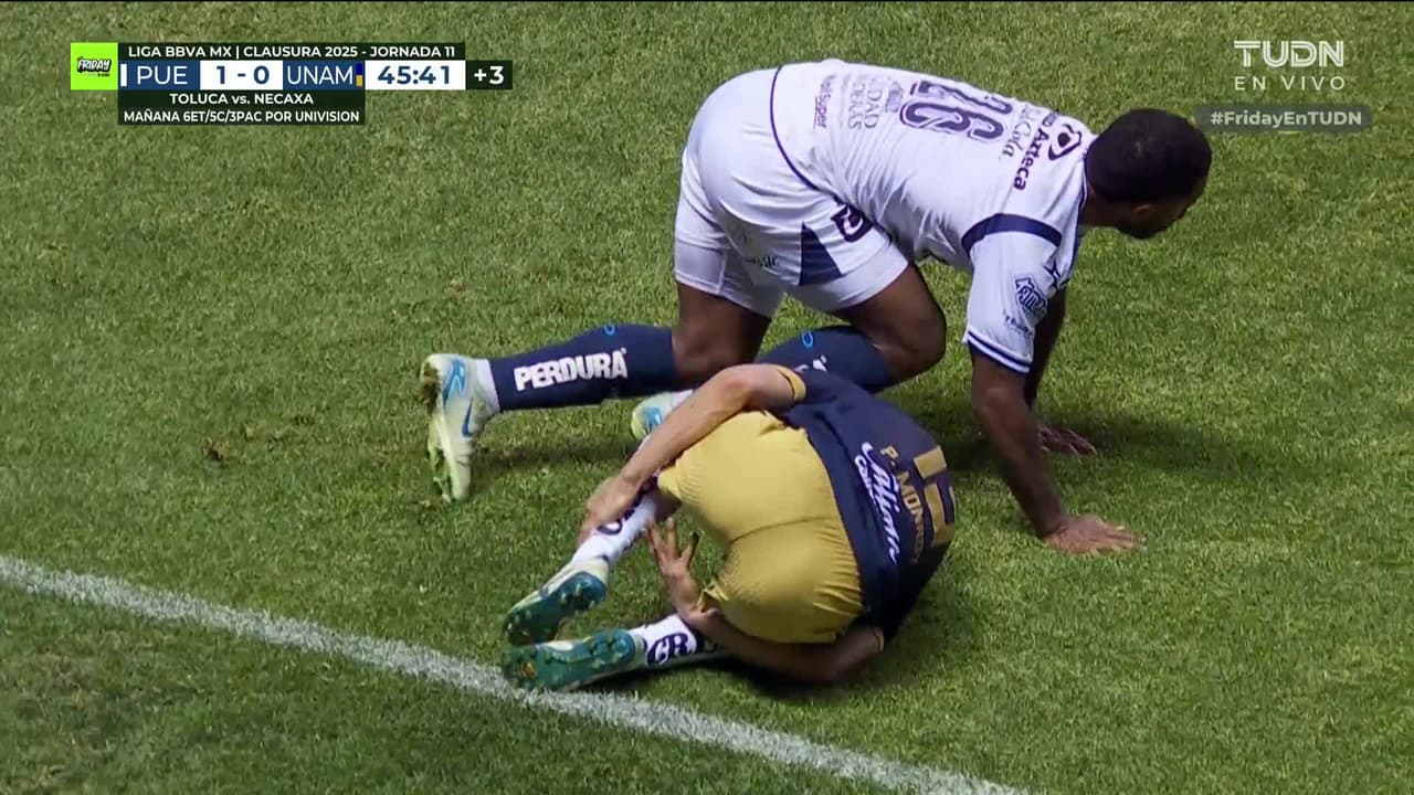 Brayan Angulo (Puebla) segunda tarjeta amarilla por juego peligroso.