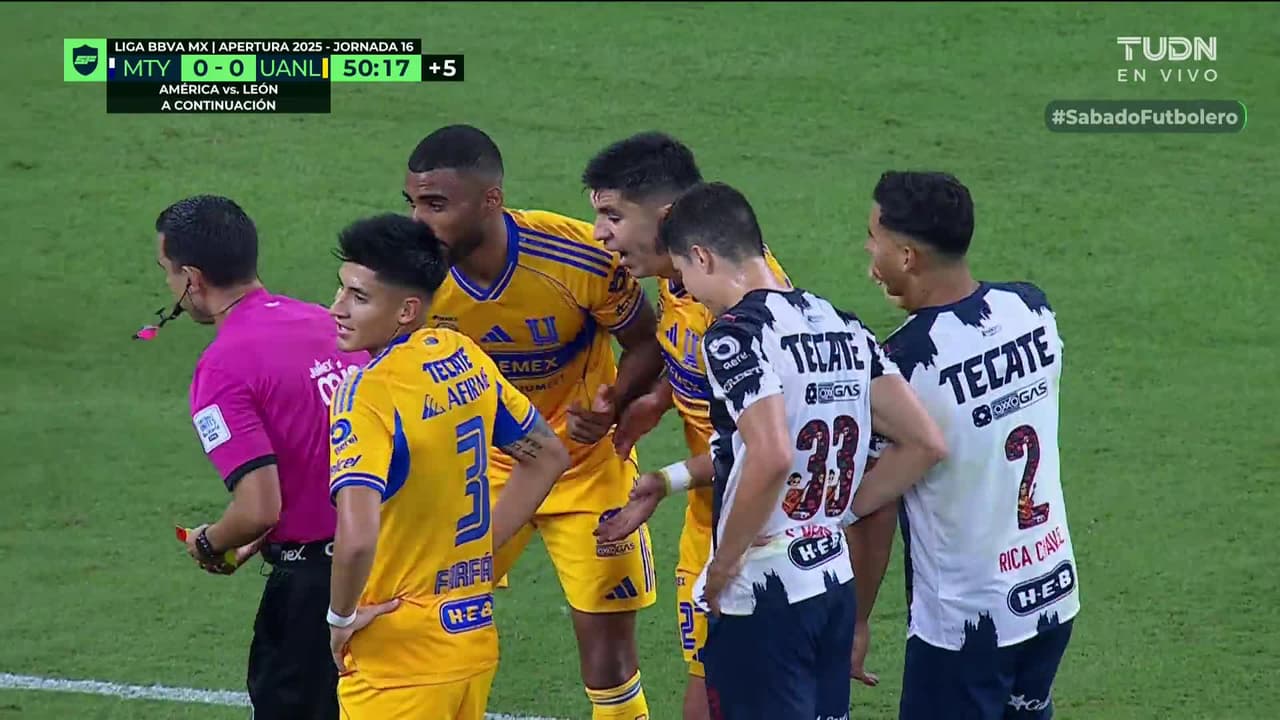 Jesús Angulo (Tigres) segunda tarjeta amarilla por juego peligroso.