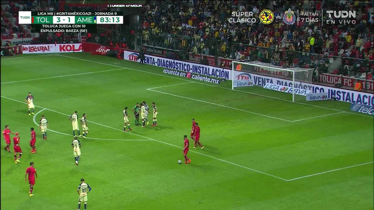 Sebastián Cáceres (América) segunda tarjeta amarilla por tocar el balón con la mano.