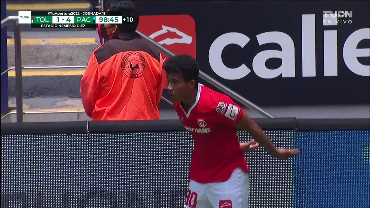 Sebastián Saucedo (Toluca) segunda tarjeta amarilla por juego peligroso.