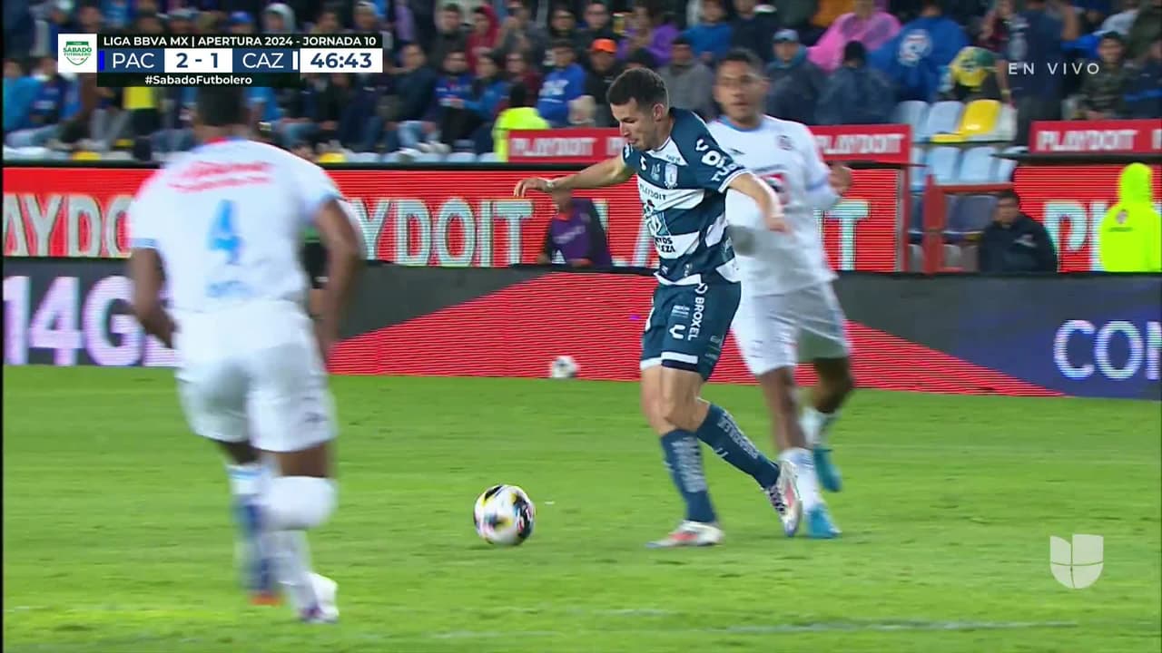 Sergio Barreto (Pachuca) segunda tarjeta amarilla por juego peligroso.