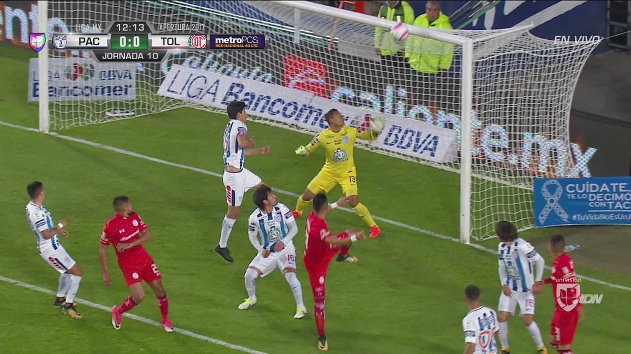 Fernando Uribe anticipó a la zaga de los Tuzos en cobro de tiro de esquina y estrelló su cabezazo en el travesaño. El Toluca estuvo cerca de romper el cero en el Hidalgo.