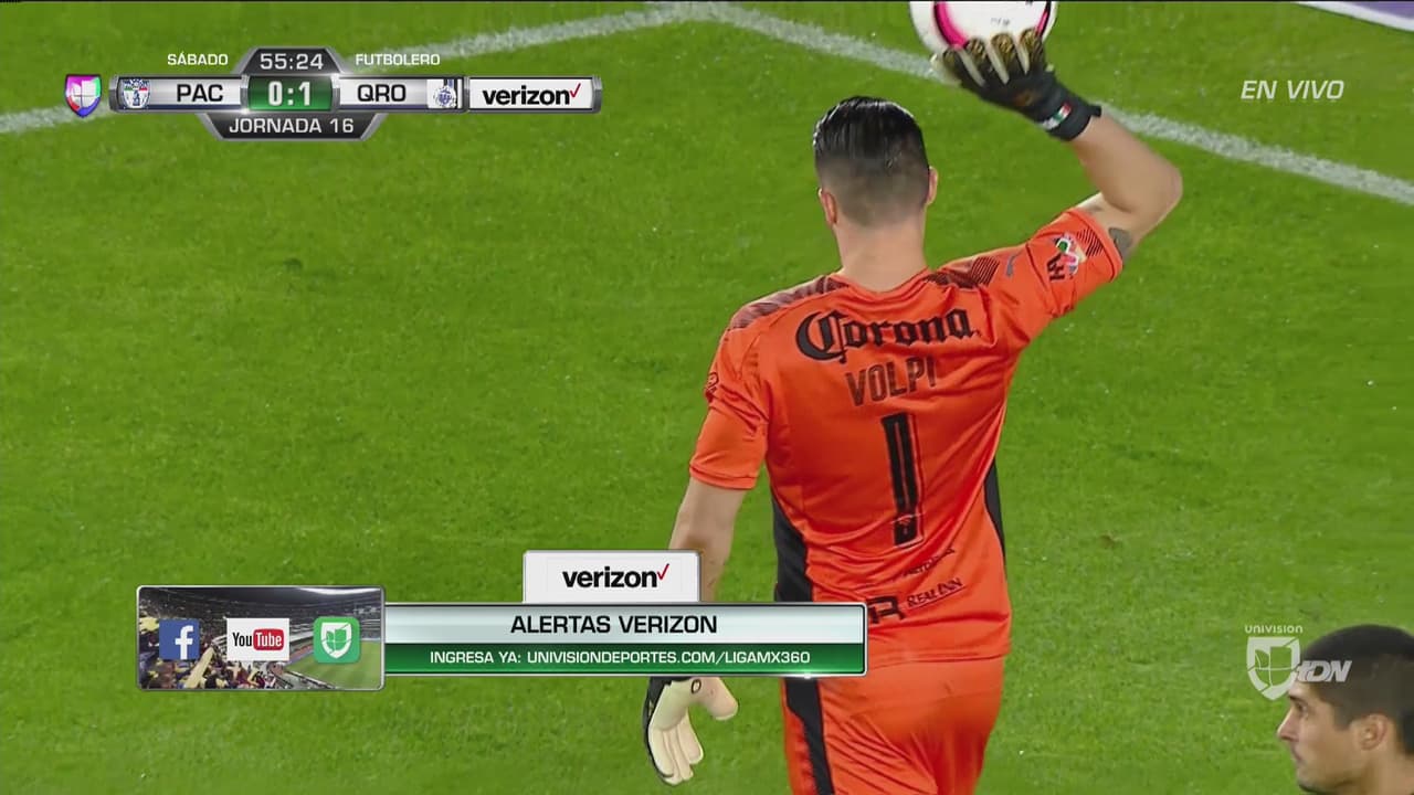 Tiago Volpi, otra vez, hace una enorme atajada, ahora a un tiro a bocajarro de Honda