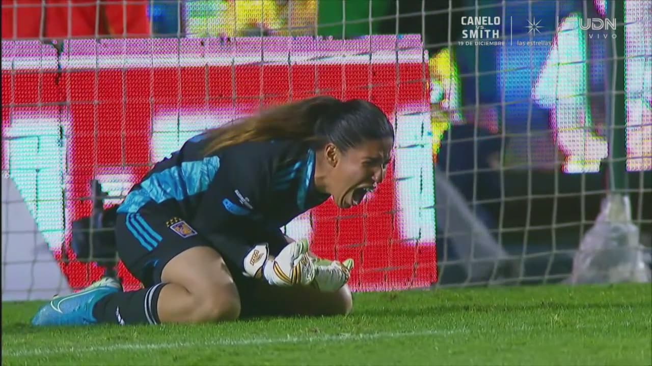 La última jugada del partido mandó todo a los tiros de envío desde los once pasos. Cristina Ferral fue la única que falló del bando universitario, Burkenroad lo hizo en el otro bando, al igual que Franco, quien vio cómo la guardameta Ofelia Solis detenía el último envío para decretar su tercer título en la liga.