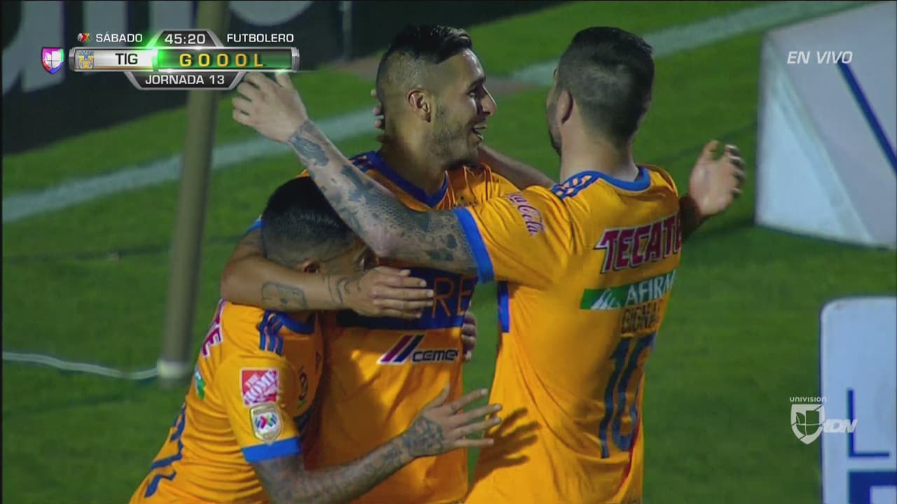 Sin mayores contratiempos y solo empleándose a fondo durante 45 minutos, los Tigres aplastaron 4-1 a un triste León que poco a poco se aleja de las posibilidades de Liguilla y ve cómo se le agotan los argumentos al ‘Chavo’ Díaz, su estratega.