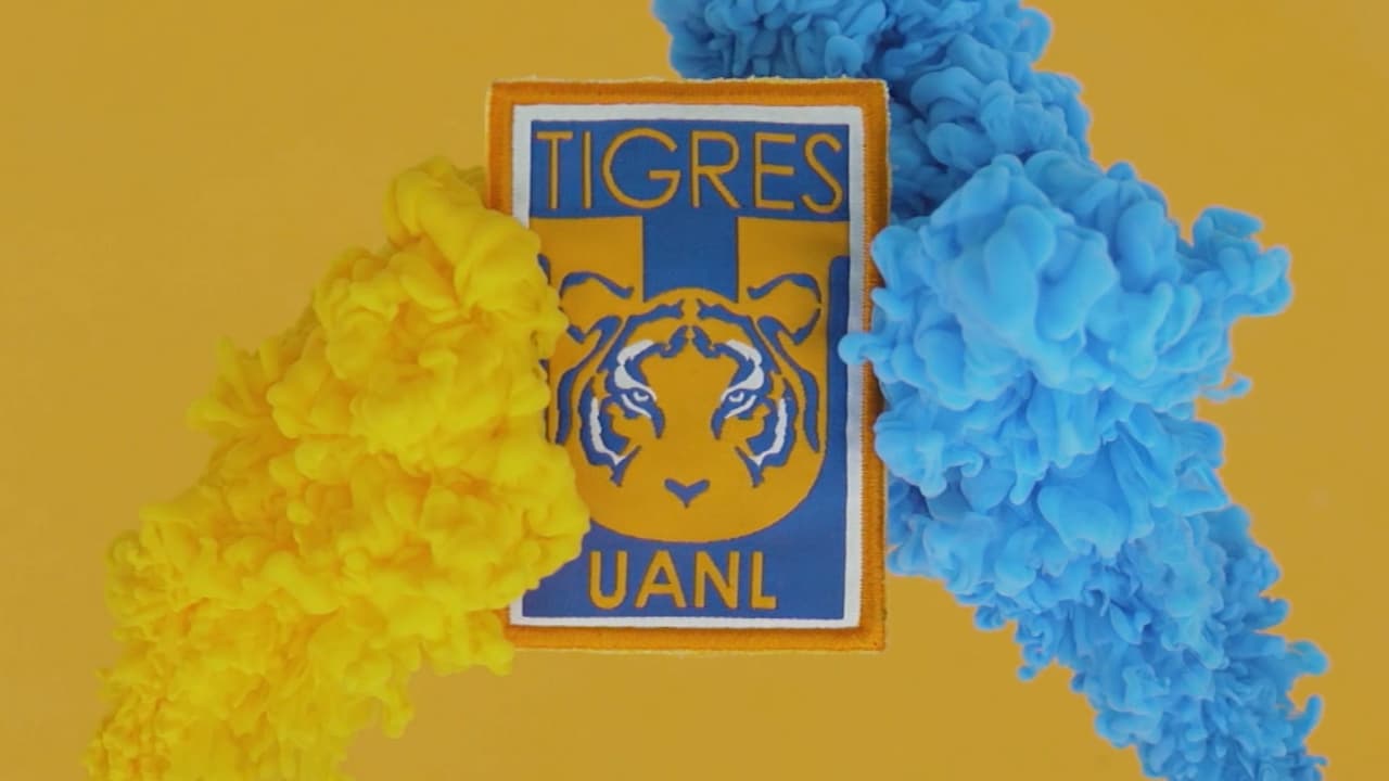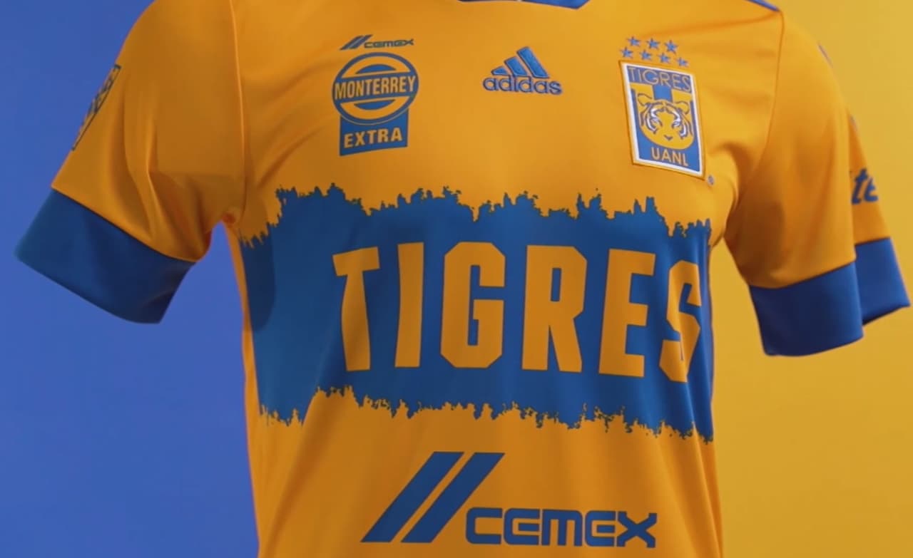 La tipografía fue modificada para escribir 'Tigres' en el centro como contraste de la franja azul.
