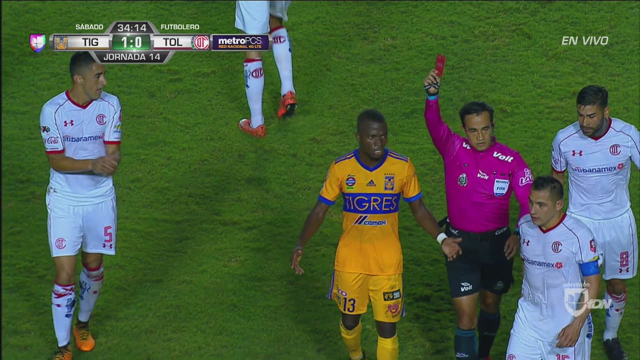 ¡Tigres se queda con 10! Aquino sale expulsado del juego.