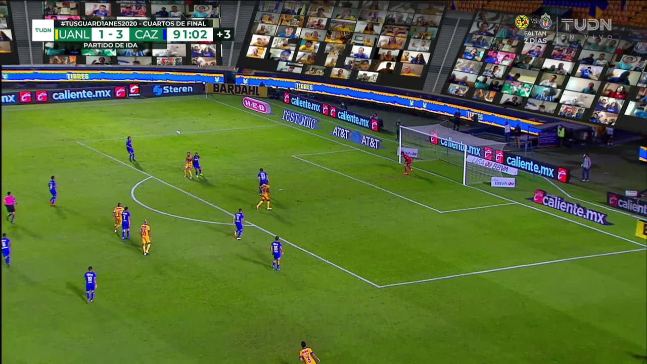 Tiro atajado raso al centro del arco. André-Pierre Gignac (Tigres) disparo de cabeza desde el centro del área. Asistencia de Luis Rodríguez.