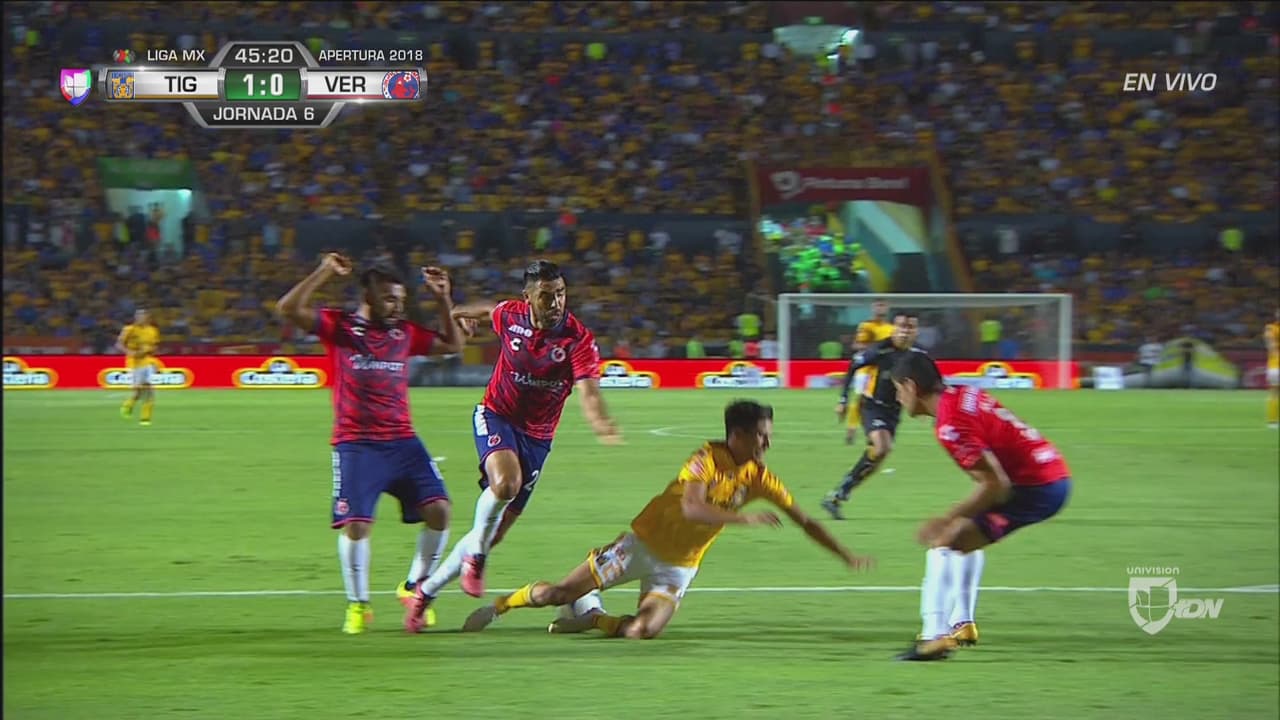A punto de llegar al medio tiempo hubo dos acciones polémicas. Primero el ‘Tiburón’ logró el empate en pelotazo para el ‘Puma’ Diego Chávez, anulado por posición adelantada. Luego, en la siguiente jugada, no le marcaron un penal a Tigres. Jürgen Damm fue derribado por la defensa veracruzana y el árbitro prefirió hacer como que no vio la jugada que pudo ser el segundo.